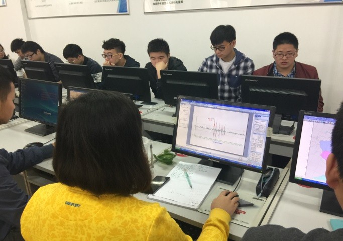 图片:2016-2017学年第1学期地球物理专业员工在进行地震预测实习和讨论