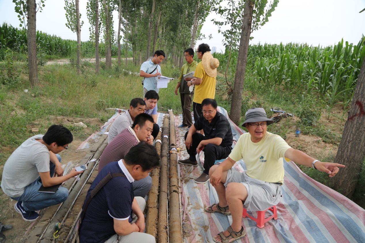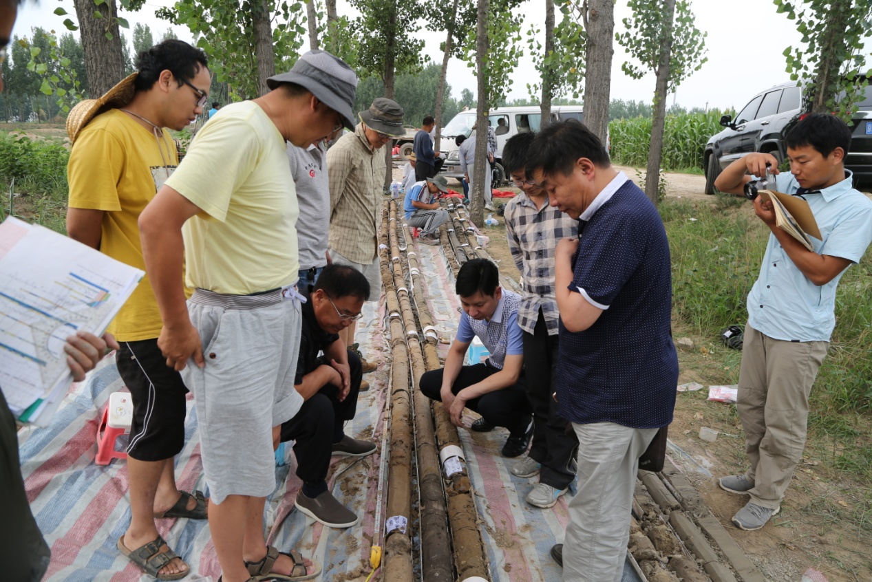 7月18日,经理薄景山教授与华北地质勘查局综合普查大队胡龙华队长、王国政总工等赴三河市齐心庄镇对“三河市活断层探测与地震危险性评价”项目(简称“三河市活断层探测”项目)钻孔探测工作进行现场指导。