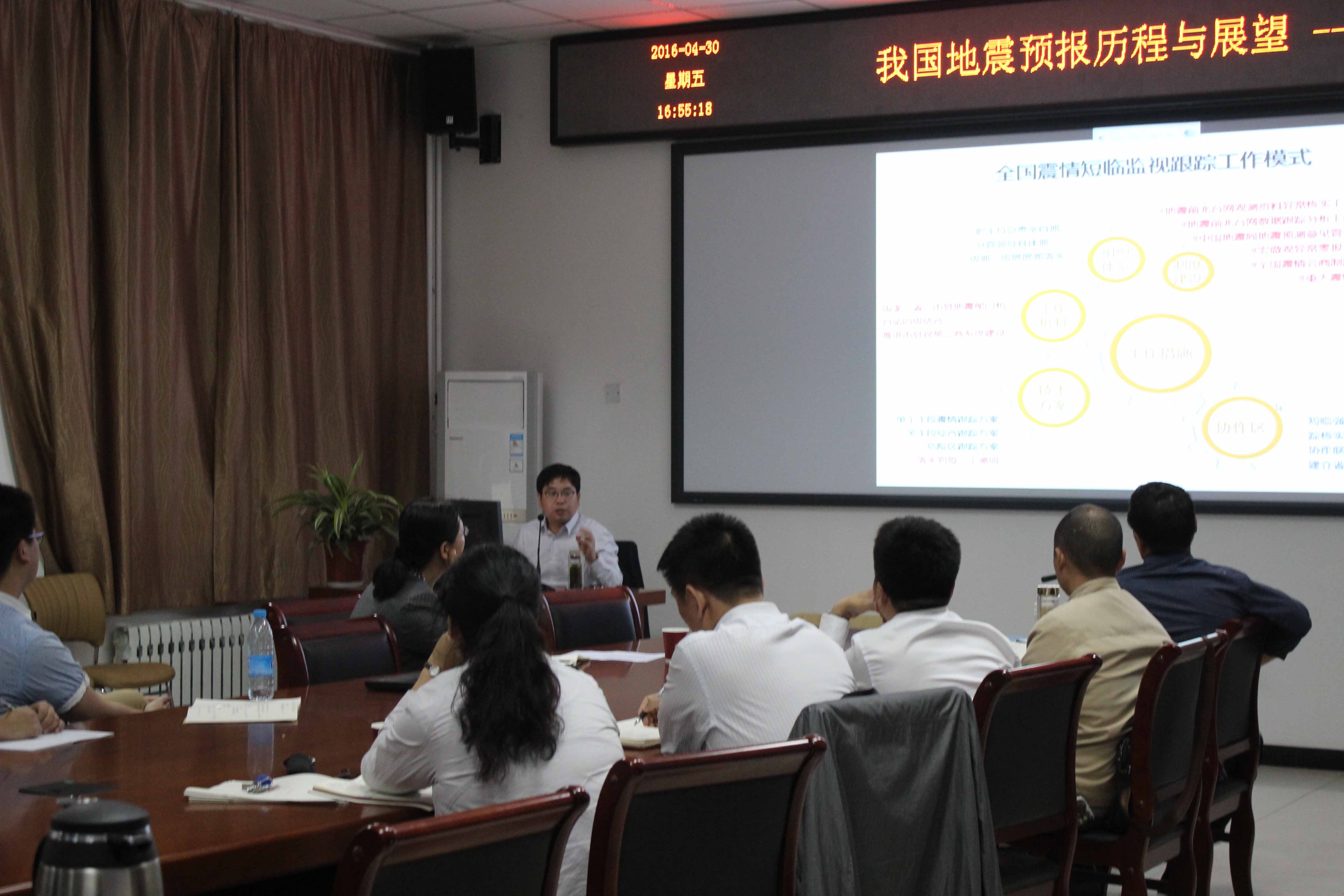 马宏生副研究员的报告题目为“我国地震预报历程与展望”,报告内容从我国地震预报工作的起源谈起,介绍了我国地震预报发展历程和主要成就,并就我国地震预报未来发展设想及主要任务做了重点介绍。报告让大家对我国地震预测研究方面有了全面和深入的了解,并就地震预报未来发展方向及其主要任务提出希望,希望公司教师能积极参与到地震预测研究与实践中,为地震预测研究贡献一份力量。