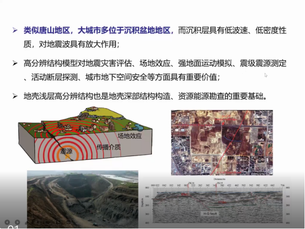 李志伟研究员从唐山地震的地质和地球物理背景、造成的灾害情况、密集地震台阵成像方法、唐山地震区浅层精细结构成像、浅层成像结果所揭示的问题等几个方面详细介绍和讨论,特别是对研究沉积层结构的各种方法及其各自的优势和不足进行了细致讲解,对于唐山地震断层处存在百米的沉积层变化进行了详细讨论。会后,李志伟研究员与参会人员就沉积层厚度成像的前沿问题以及唐山地震的相关问题进行了交流与探讨。