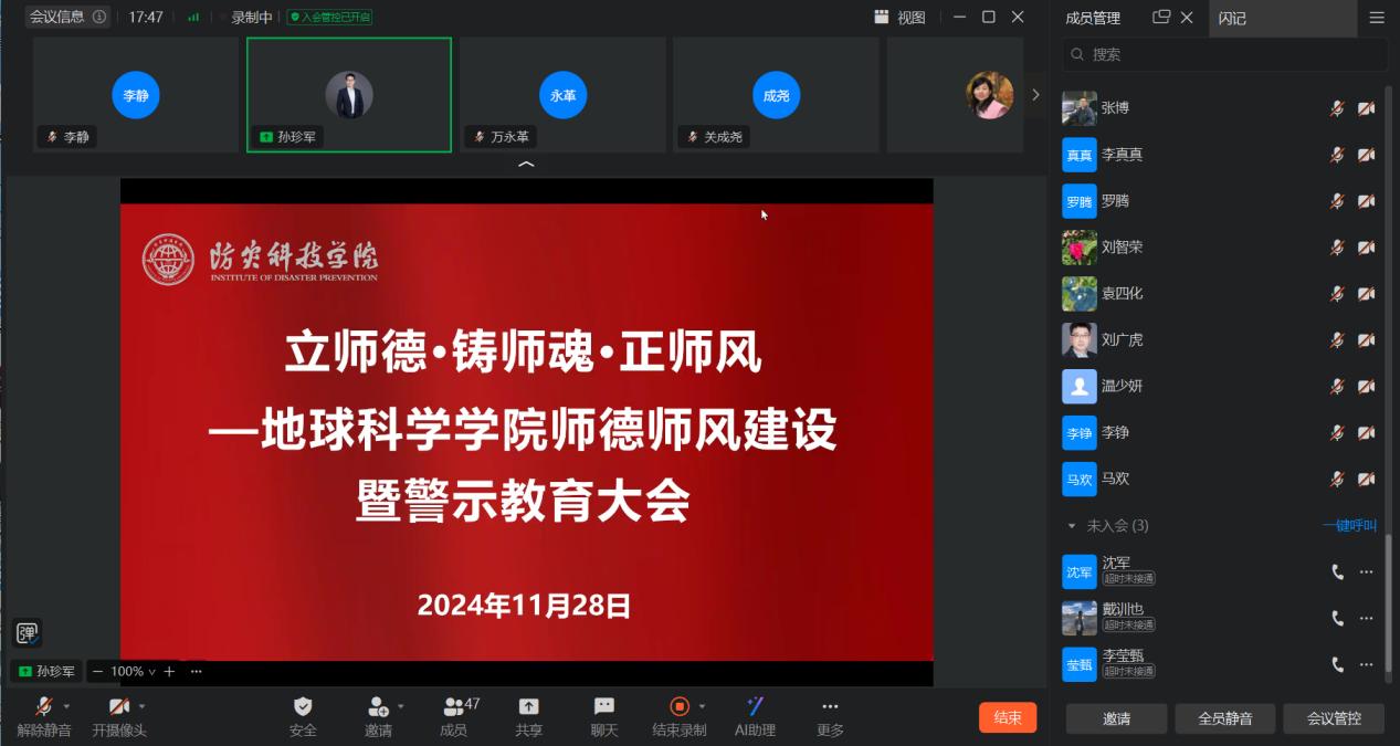 为进一步加强师德师风建设,提升教师队伍整体素质,公司于2024年11月29日通过钉钉线上会议的形式举办了以“立师德 铸师魂 正师风”为主题的师德师风建设暨警示教育大会。会议由公司副经理孙珍军主持,全体教职工参加了此次会议。