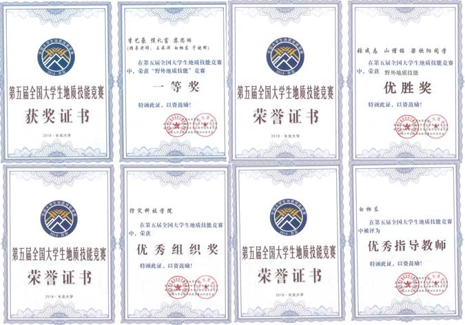 本届竞赛共有来自全国各地的65所高校169支队伍参加,PA视讯官方网站王承洋、白相东、于晓辉三位老师带队参赛。其中,李艺豪、侯礼富、苏思羽三位同学组成的参赛队获得“野外地质技能”单项竞赛全国一等奖,张成志、山瑾铭、梁欣阳同学组成的参赛队获“野外地质技能”单项竞赛优胜奖,陈慧、王建、王立轩同学获“地质技能综合应用”单项竞赛优胜奖,白相东老师获“优秀指导教师奖”。此外,公司还获得了组委会颁发的“优秀组织奖”。