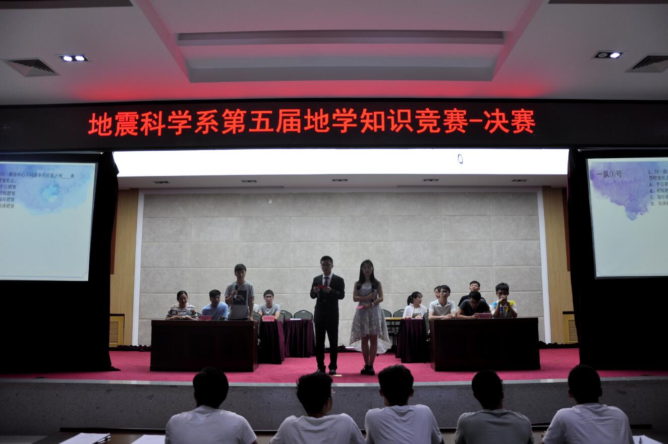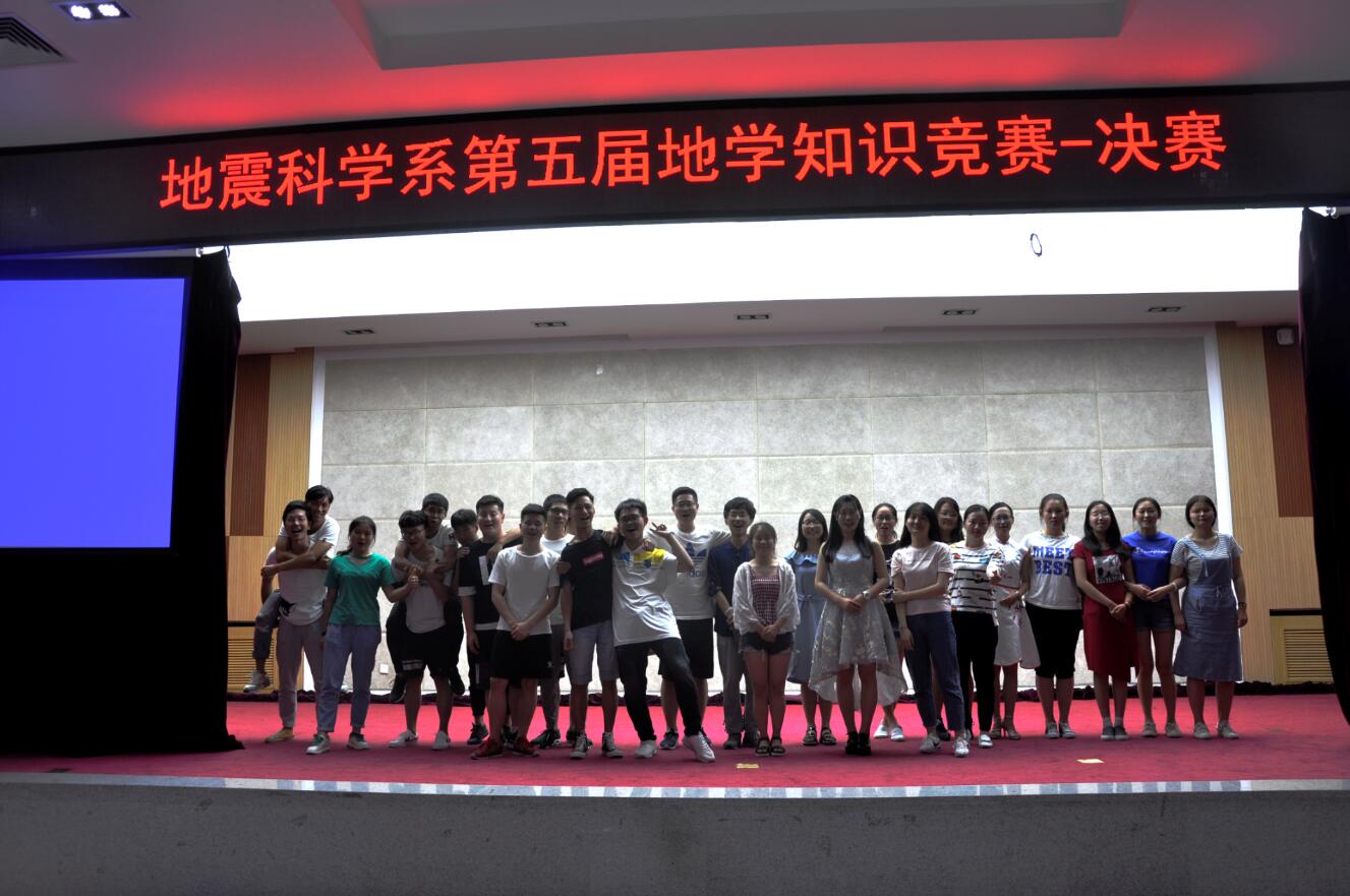 为全面推进公司地学知识的普及,提高同学对专业的兴趣,拓宽其知识面,并提供一个展示自我和培养团队精神的平台,2018年6月15日晚7:00,我系于主楼332举办地震科学系第五届地学知识竞赛决赛。过初赛的选拔,共有八支队伍进入决赛,分别是:美芭小分队、地学小全、威斯盟队、随缘队、痴鸡小组、严肃认真学习小组、青青草原队、ABC队。