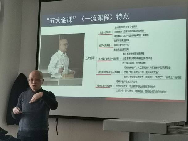 毛宁波教授首先为各位教师介绍了国家级一流课程建设和申报工作的要点,并结合自身多年的教学和建设课程经验,以《地震勘探原理》课程为例,为大家揭示了国家级一流课程“课程质量高、课程类型多样、参与范围广,示范效应强”的特点,并特别指出,在线上国家级一流课程的建设过程中,MOOC平台选择的关键性。毛教授幽默风趣的讲解,让广大教师切实体会到了一流课程建设在团队建设中的重要性。报告会上毛宁波教授还积极与到场教师互动,耐心解答相关问题,并在地球物理和勘查技术与工程专业的一流课程建设方面给予了一系列有益的建议。(撰稿:马欢 摄影:孙珍军)